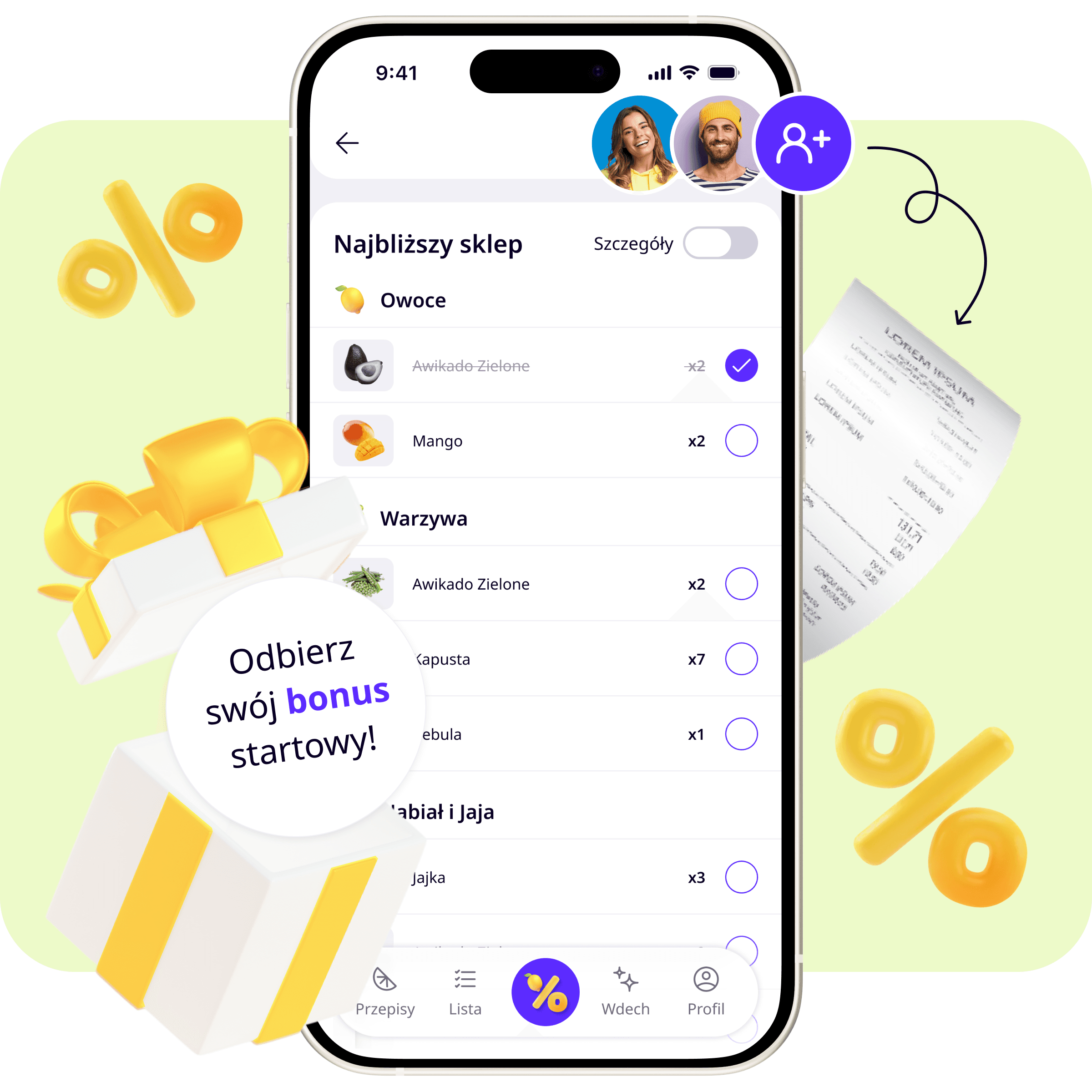 Dodawaj znajomych i dziel paragon